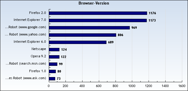 Übersicht der eingesetzten Browser, man kann gut den Anteil erkennen, der durch Suchmaschinen verursacht wird ...